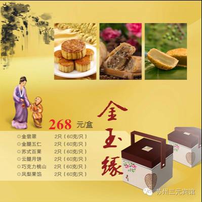 月饼是月亮在地上的影子,我们愿意摘下明月,将苏州胥城食品有限公司生产,苏州三元宾馆监制的2016年月饼礼盒,诚意奉上,愿您月明风清,阖家团圆!合家欢